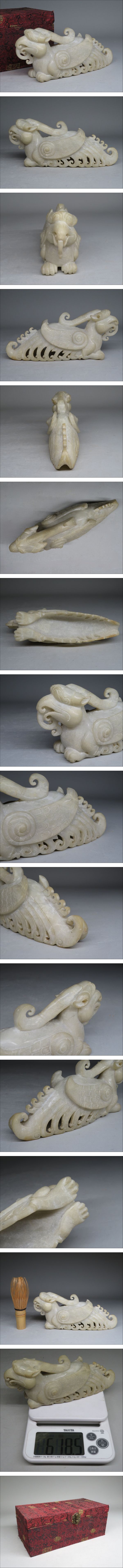 【東】清時代 玉石製 白玉 瑞獣 置物 玉彫り 細密彫刻 箱付き 中国美術/古美術・骨董品 lot:41623 收藏