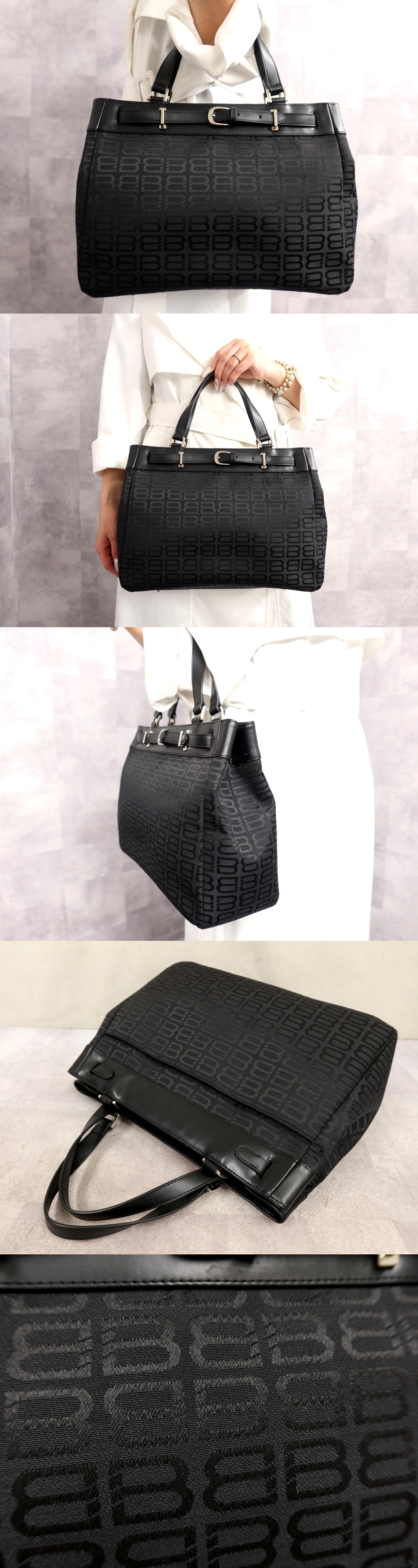 ●超美品●BALENCIAGA バレンシアガ●キャンバス カーフ レザー 本革●ハンド バッグ●黒●シルバー金具●腕掛け●B5 収納 かばん●Js67110 收藏