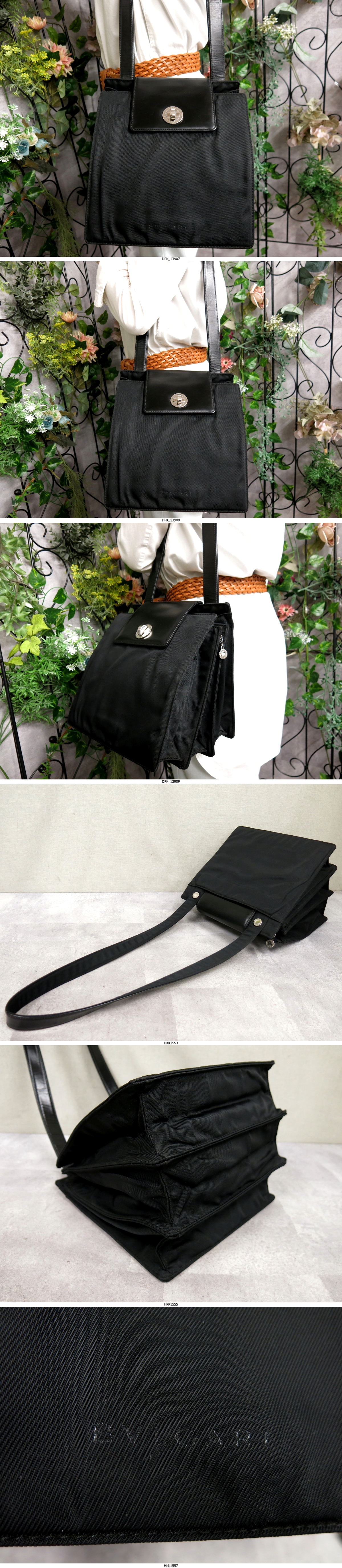 ●超美品●BVLGARI ブルガリ●サークルロゴ●ターンロック●ナイロン カーフ レザー 本革●ショルダー バッグ●黒●シルバー金具●Js56851 收藏