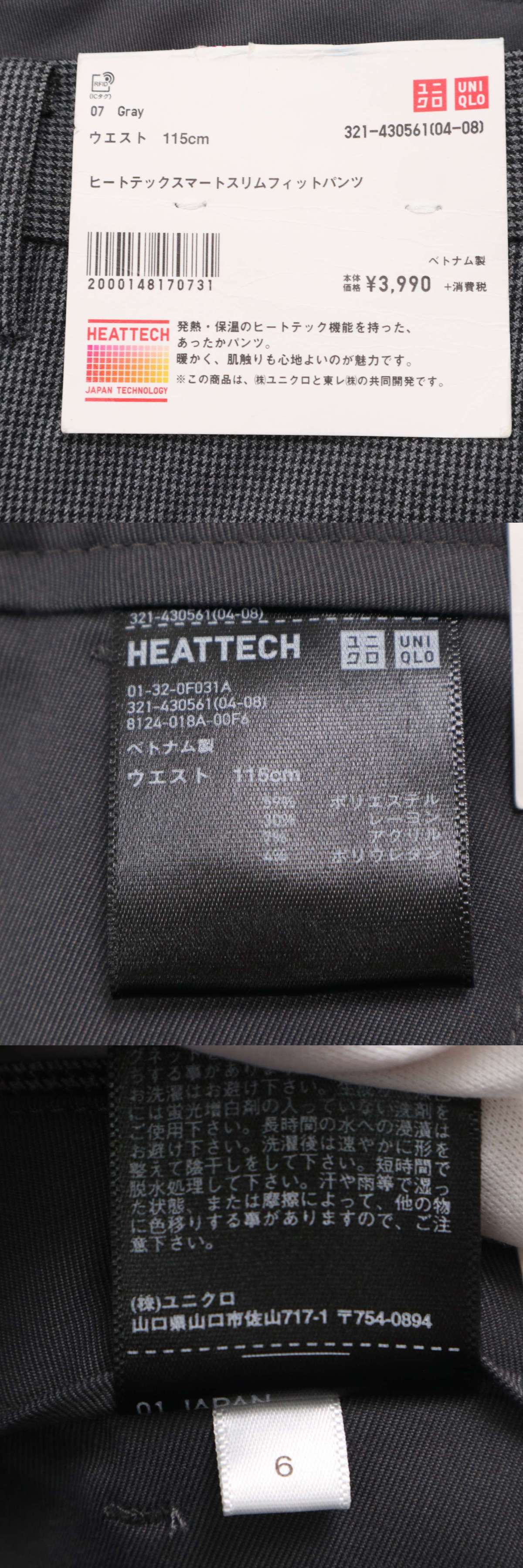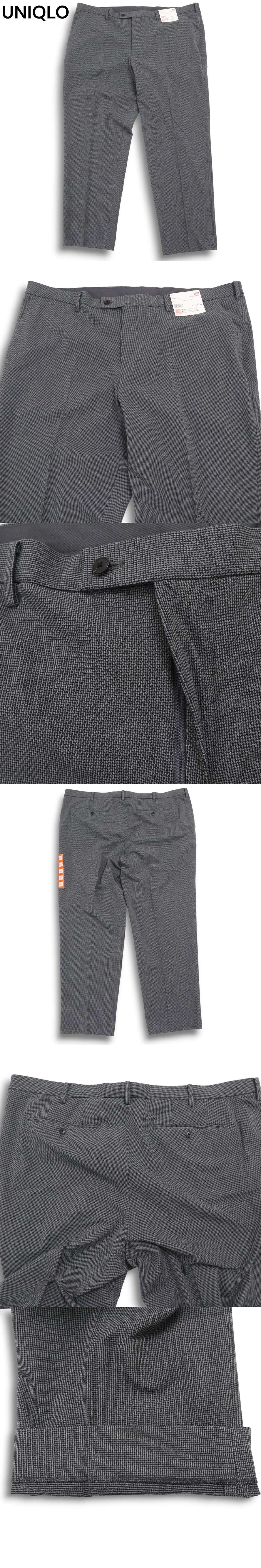 新品★ 未使用 UNIQLO ユニクロ 千鳥 ヒートテック スマート SLIM FIT スラックス パンツ Sz.115 メンズ グレー 大きい 特大 收藏