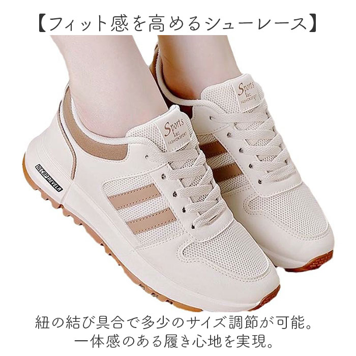 | 商品説明 | ・・【軽やかに歩ける】 ・毎日快適な歩行をサポートする「レディーススニーカー」。 ・【どんな服にも合わせやすい】 ・シンプルながら、ラインデザインのアクセントがおしゃれ♪ ・【ムレにくいメッシュ素材】 ・通気性があるから、長時間履いても快適さをキープ〇 ・【フィット感を高めるシューレース】 ・紐の結び具合で多少のサイズ調節が可能。一体感のある履き心地を実現。 ・【快適な歩行をサポート】 ・厚みがありつつ、ほぼフラットなソールが安定感を保ってくれる。 ・【締め付けを抑えて優しくフィット】 ・履き口まわりにもクッションを内蔵し、肌当たりが軽やか。 ・【足裏を優しく包むインソール】 ・柔らかな質感でクッション性も程よく、取り外して洗えるから清潔に保てる◎ ・【滑りにくい靴底】 ・安定したグリップ力のある底面凹凸設計で安心して歩ける。 |