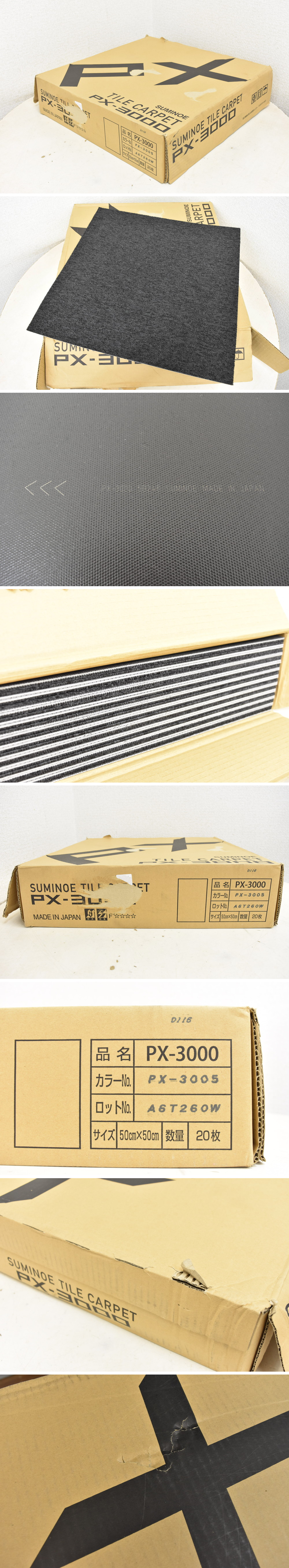 【未使用】 スミノエ タイルカーペット PX-3000 1箱 20枚 カラー PX-3005 50cm×50cm ブラック系/黒系 14W998 收藏