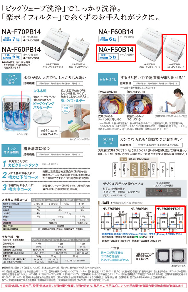 | メーカー・型式 | パナソニック / NA-F50B14-H | |