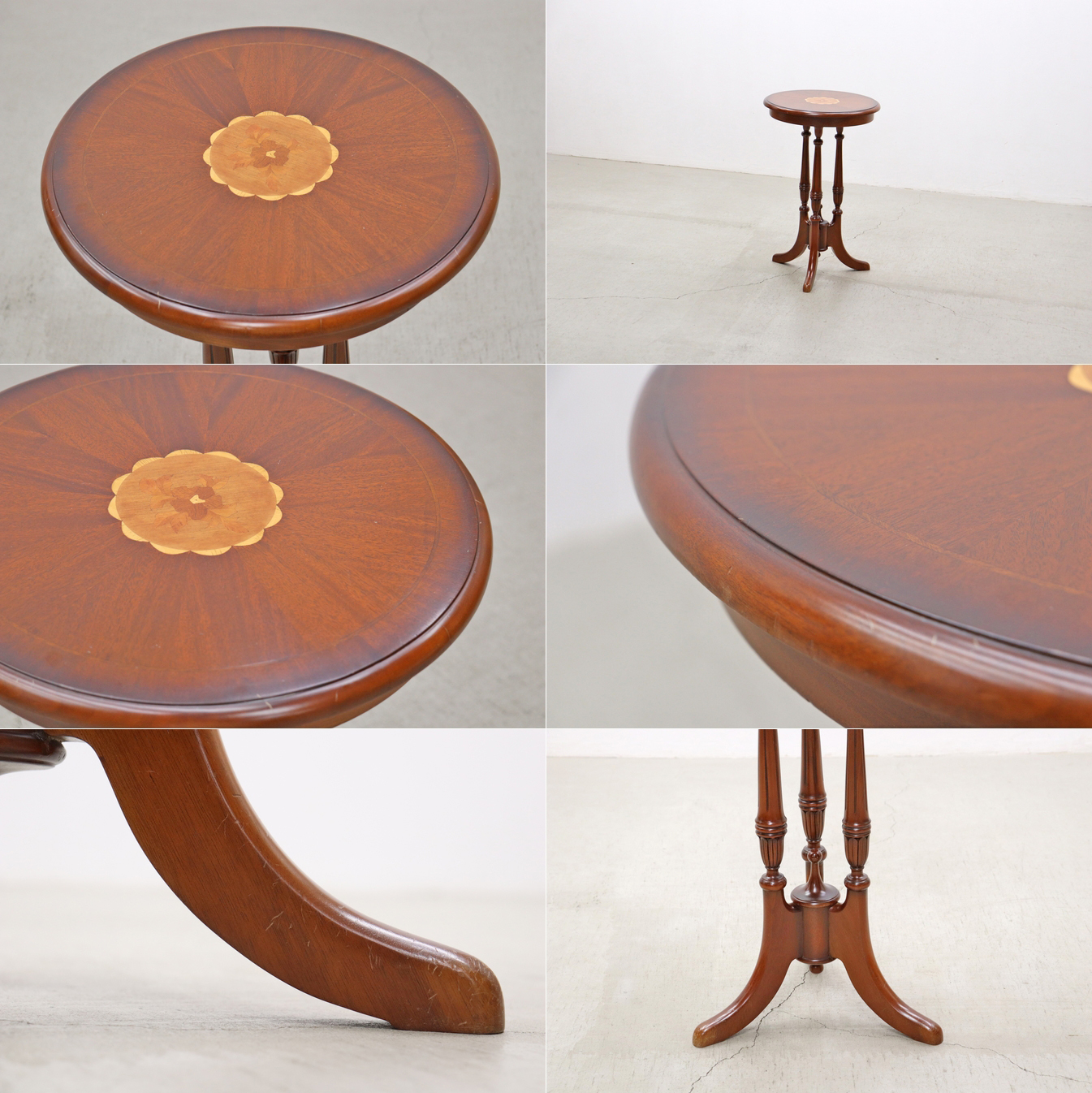 ◆クラシカル 象嵌 ラウンド サイドテーブル 花台 展示台/ヴィンテージアンティークイタリア英国洋館サロン/RAT27158◆ 收藏