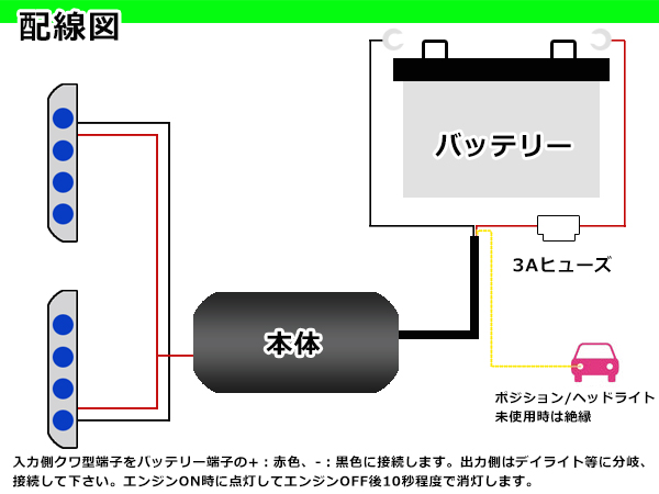LED デイライト 自動点灯 ユニット デイランプ オート化 バッテリー 電源 エンジン 連動 同時に 付きます