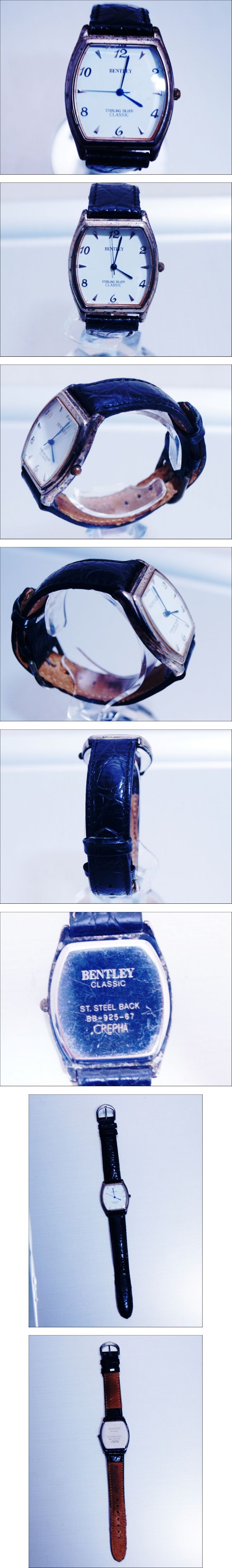 電池交換済み★ BENTLEY ベントレー★STERLING SILVER CLASSIC★シルバー メンズ時計☆革ベルト 收藏