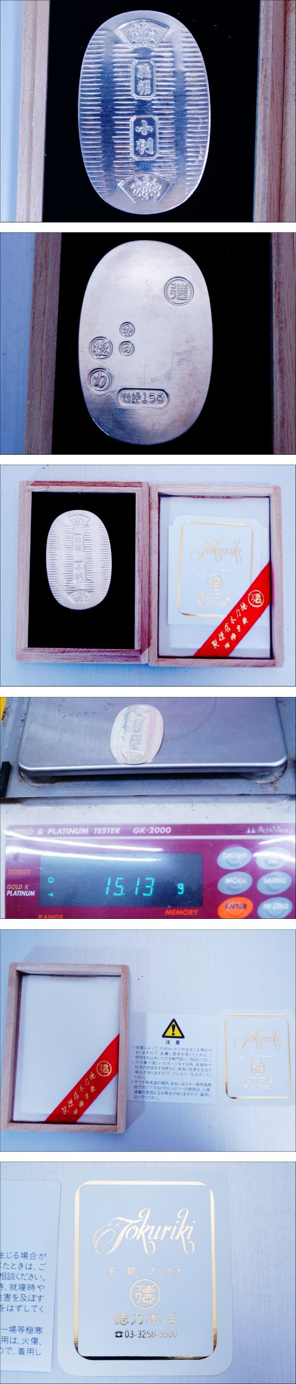 未使用品★美品☆純銀製小判★徳力製 重さ:15.13g☆桐箱・説明書 | |||