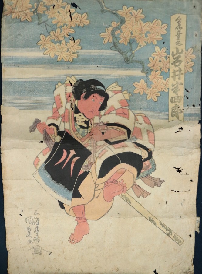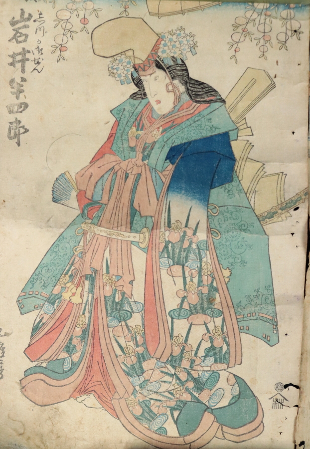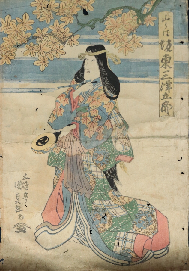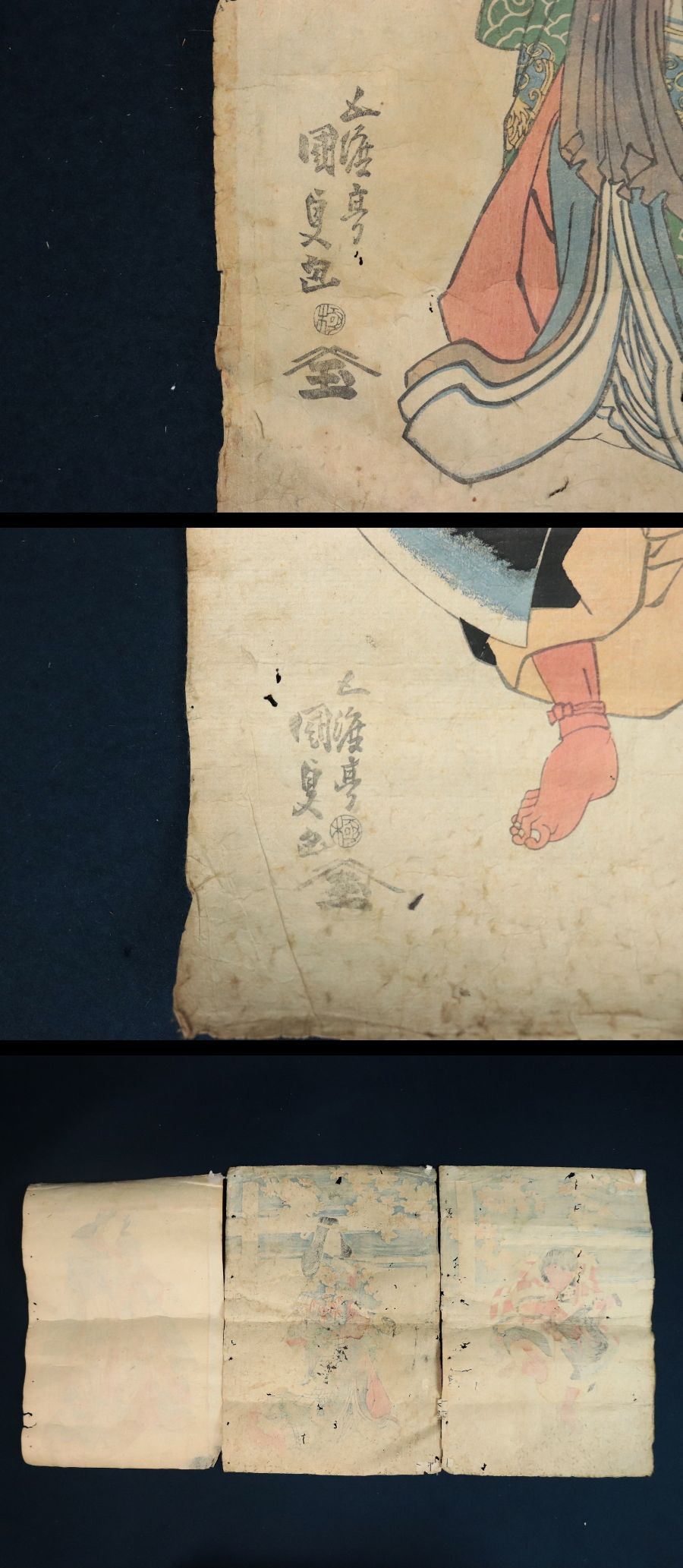 13085■【真作】歌川国貞(三代歌川豊国) 浮世絵 三点 木版 役者絵 金太郎 山姥 静御前 江戸時代 マクリ 收藏