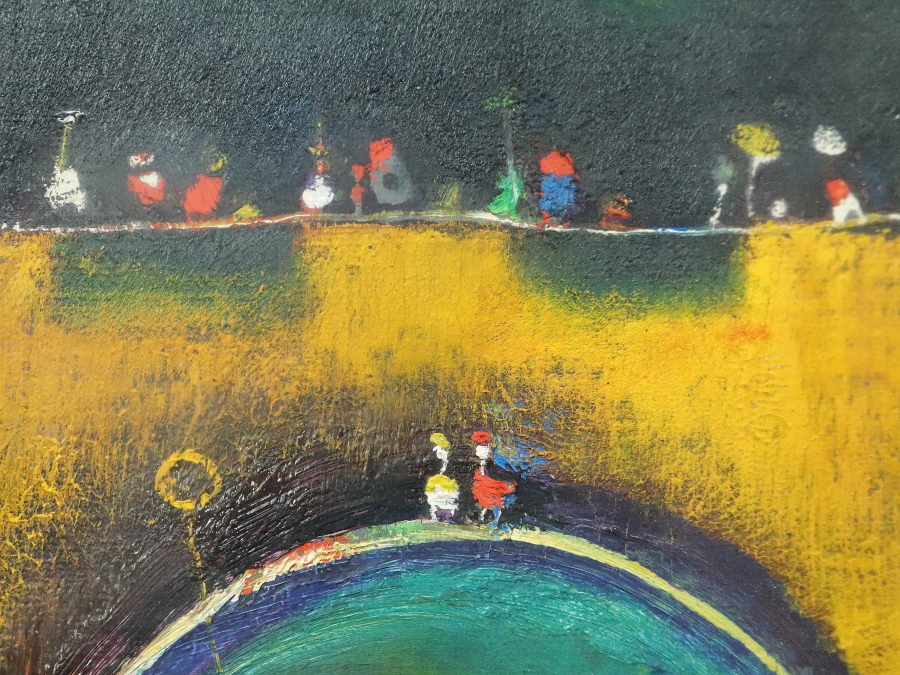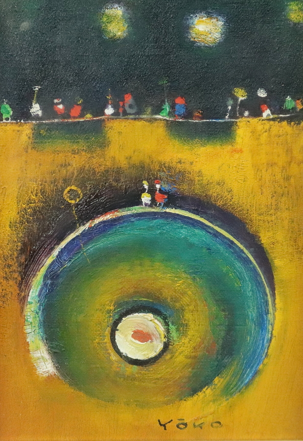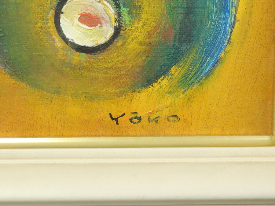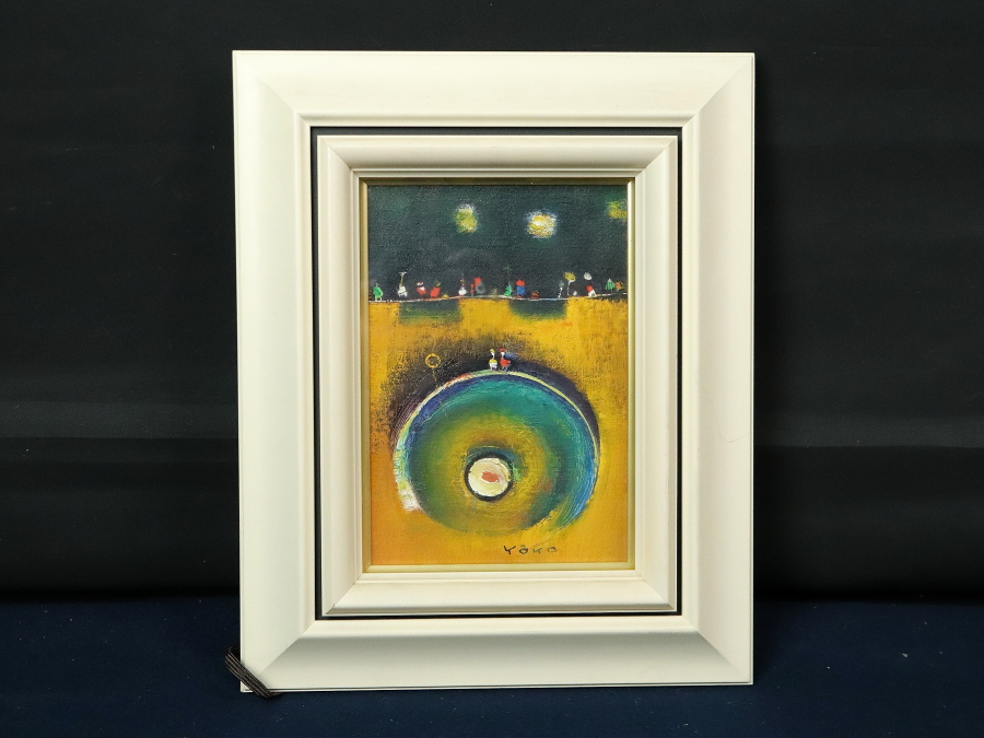 13215■【真作】鴨下葉子 「私のメルヘン」 キャンバス SM号 油彩 抽象画 抽象画家 東京の人 額装 收藏