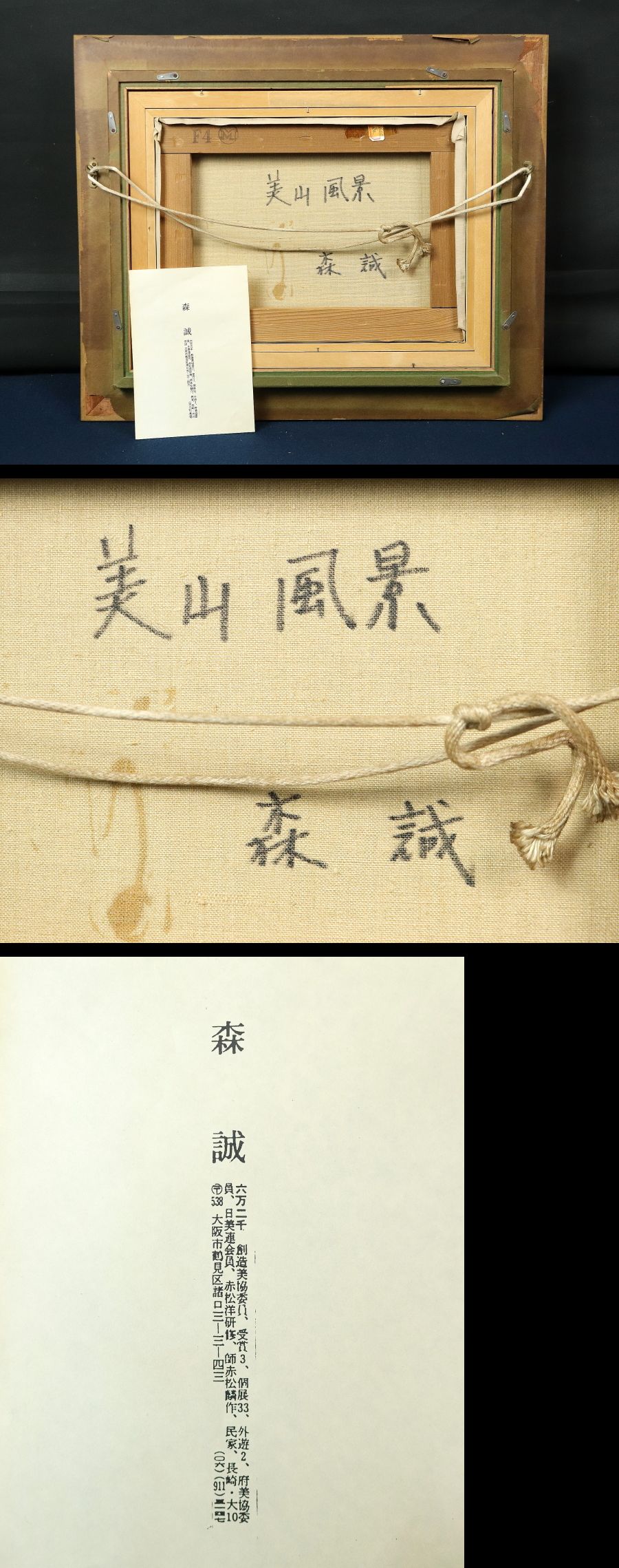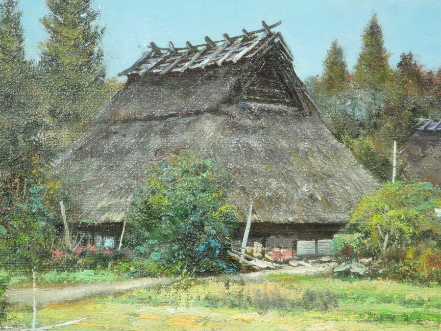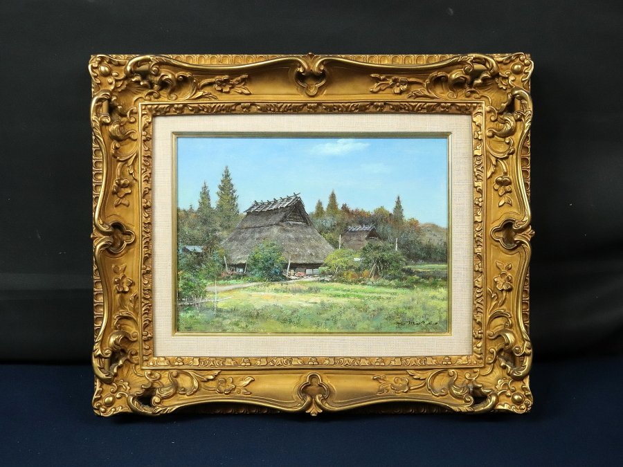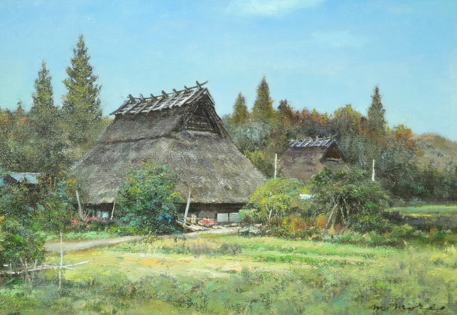 13217■【真作】森誠 「美山風景」 キャンバス F4号 油絵 洋画家 元創造美術協会会員・委員 額装 收藏