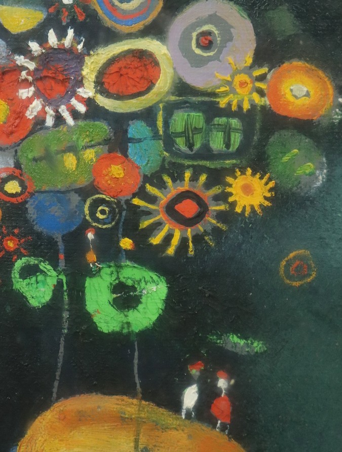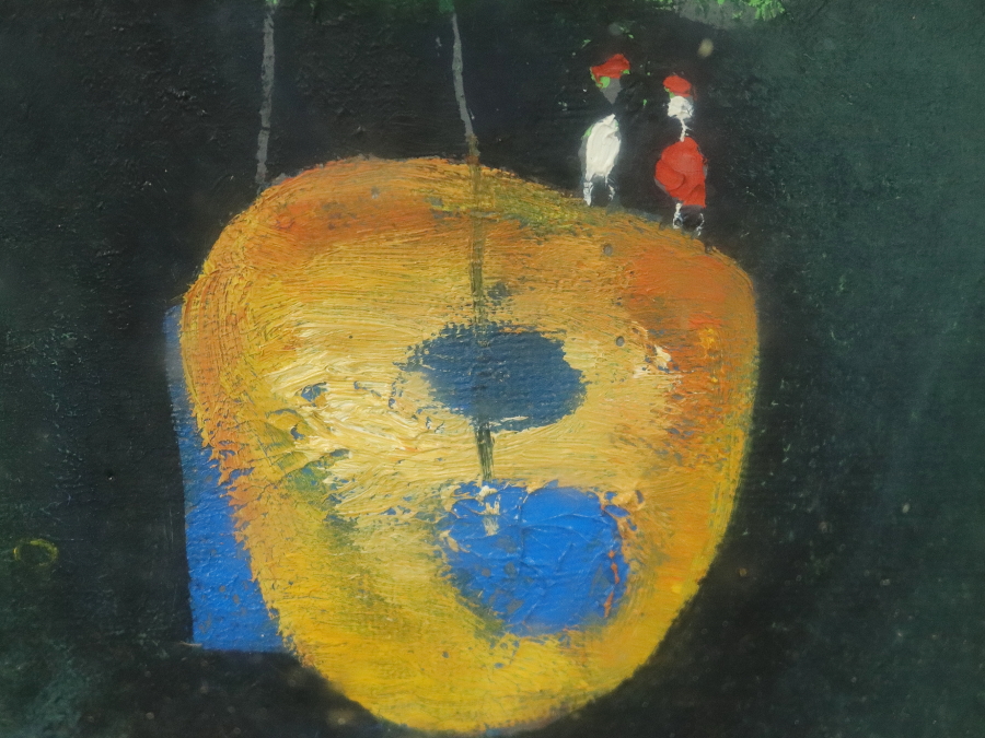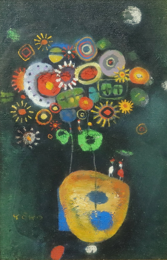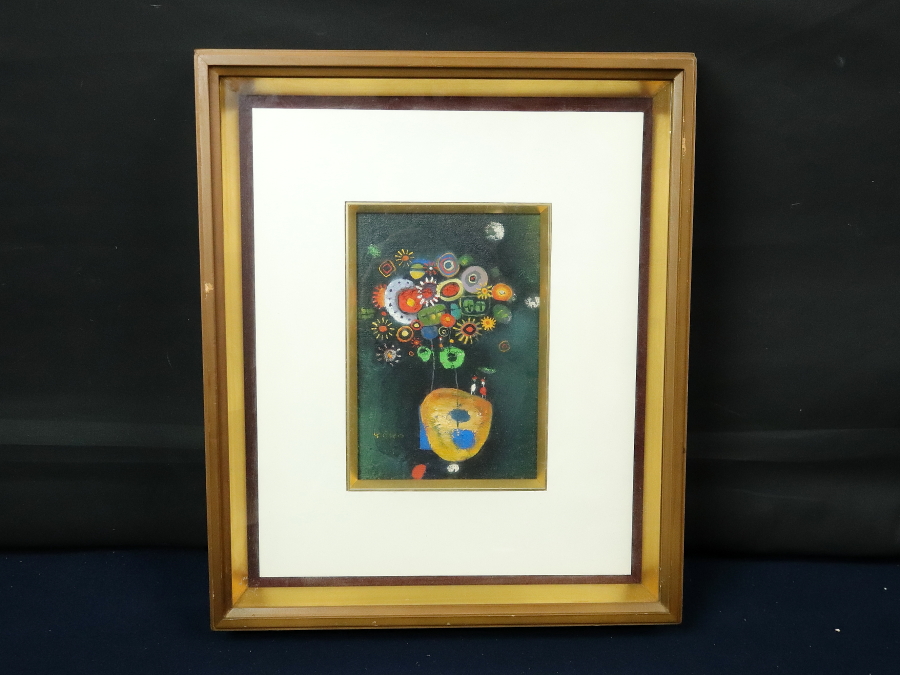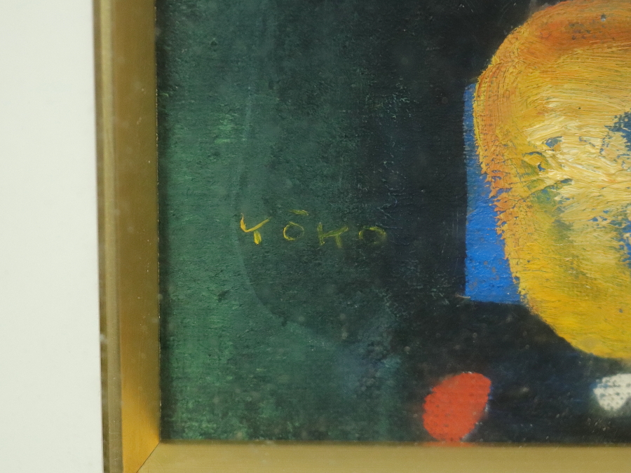 13212■【真作】鴨下葉子 「私のメルヘン」 キャンバス SM号 油彩 抽象画家 東京出身 額装 收藏