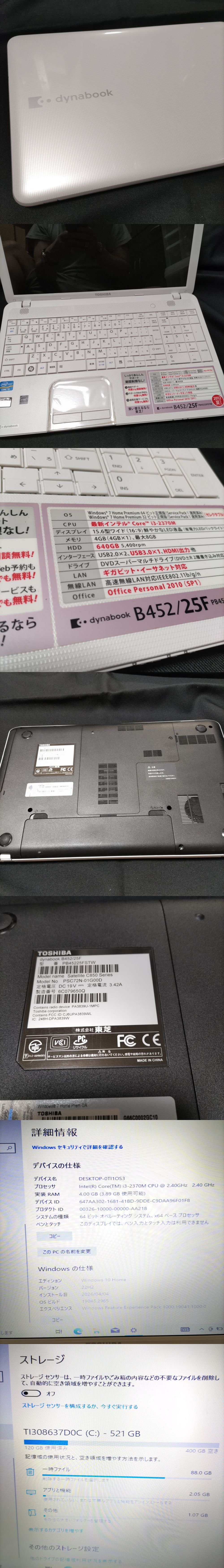 ◎東芝◎Toshiba dynabook Satellite B452/25F Core i3-2370M 4GB 640G DVD 15.6TFT Win10 通電確認済 即発送 收藏