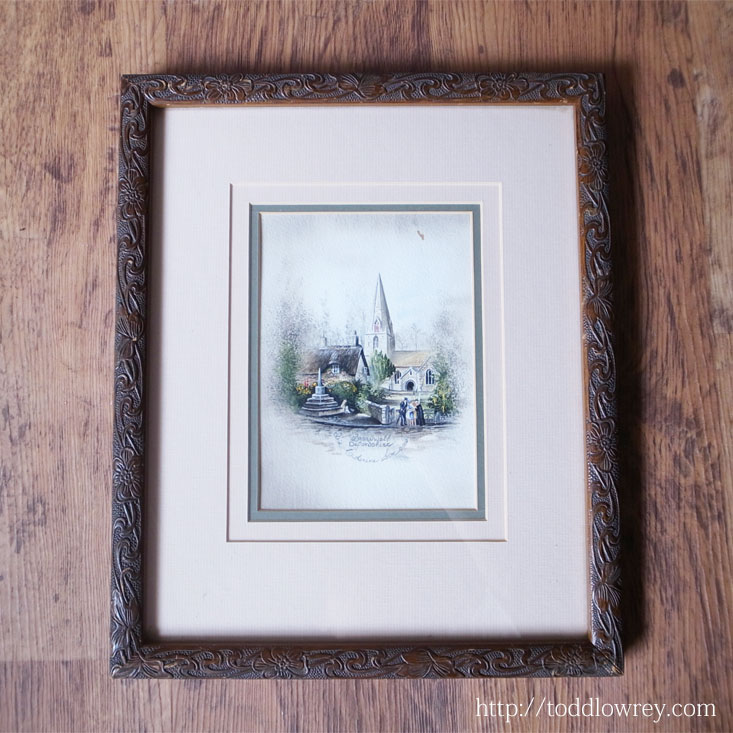 【ブロードウェルの教会の日常】イギリス ヴィンテージ アートフレーム オリジナル 絵画 木額縁◆Vintage Painting with Oak Caving Frame 收藏