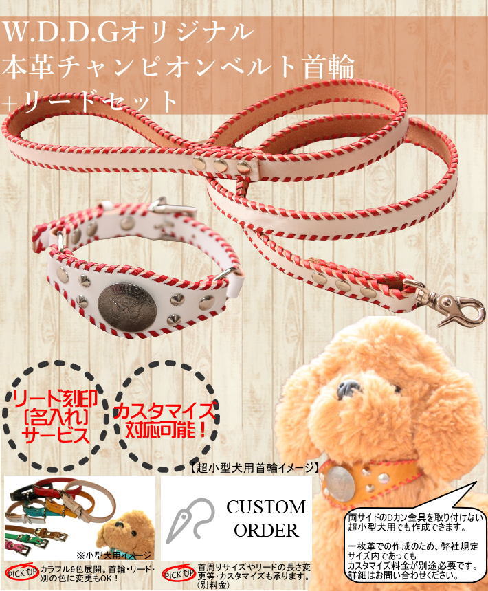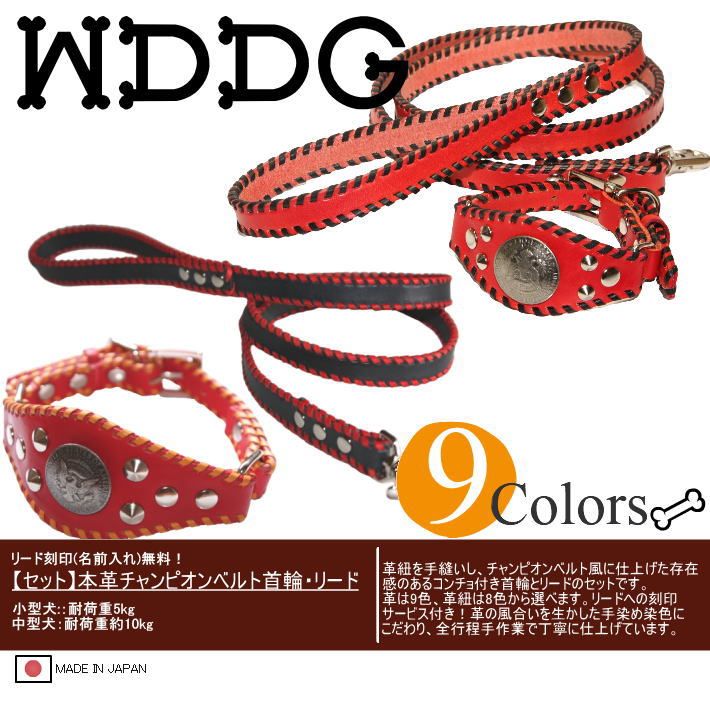 犬 革 首輪 リードセット 名前入り 本革 チャンピオン ベルト リード 首輪セット 中型犬 犬首輪 レザー 牛革 日本製 スタッズ/ 收藏
