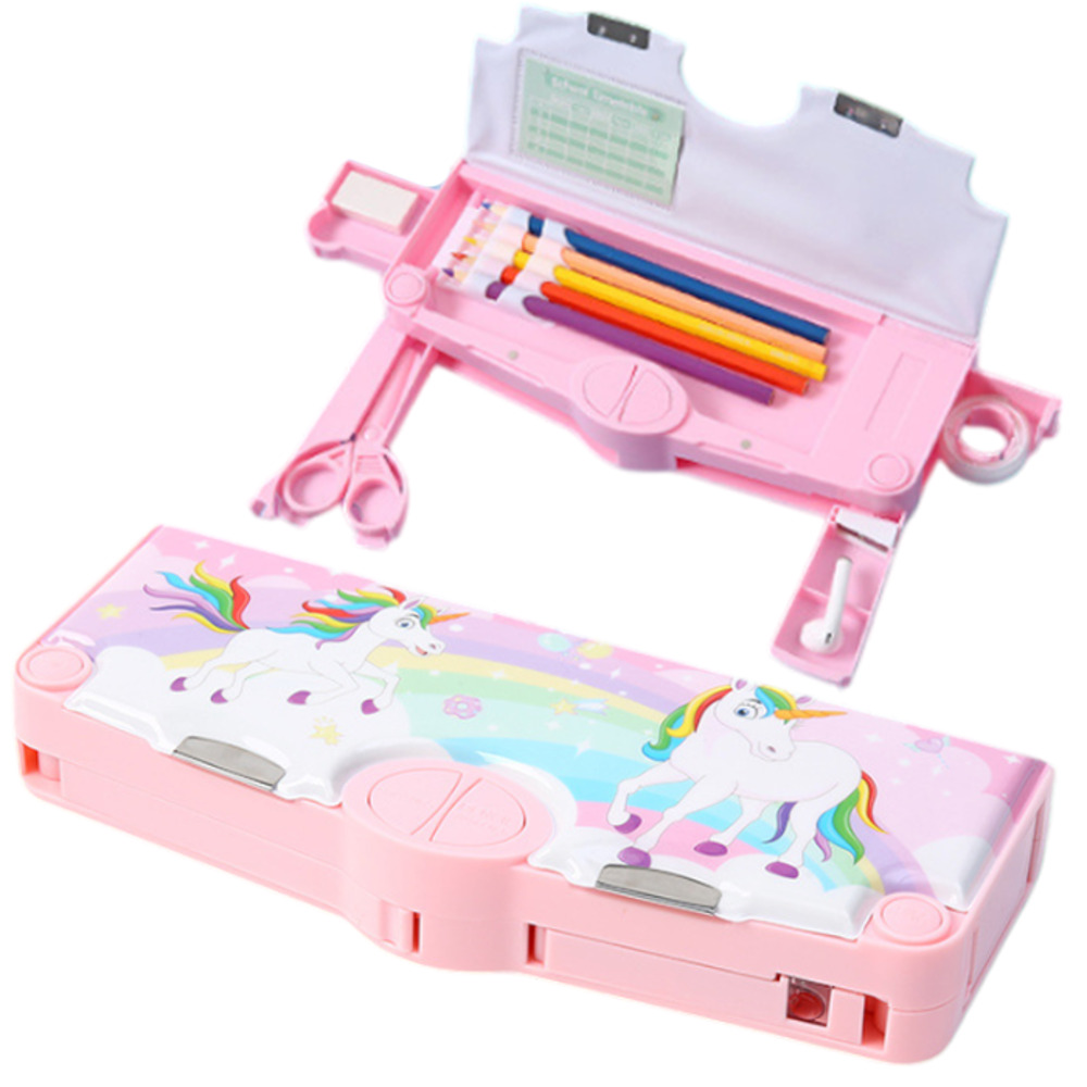 ☆ Dタイプ ☆ ペンケース 多機能 筆箱 多機能 小学生 ペンケース 筆入れ ふでいれ ペン入れ 女の子 男の子 片面 鉛筆削り付き ハサミ 箱型 收藏