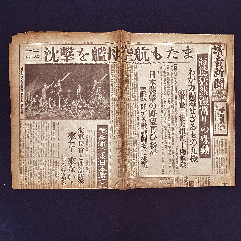 S0086 戦前 昭和17年2月27日 読売新聞 朝刊 大東亜戦争 大日本帝国 陸軍 海軍 海鷲猛然体当りの殊勲 またも航空母を艦撃沈 收藏