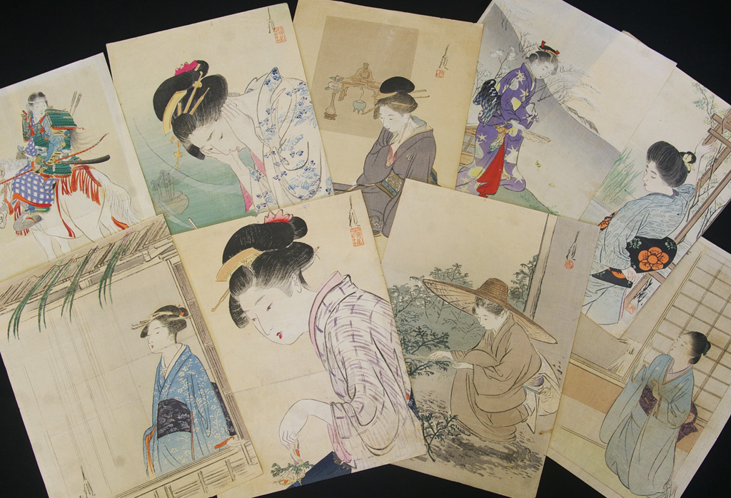 ■『尾形月耕』明治 木版 挿絵 9枚まとめ■口絵 浮世絵 錦絵 美人画 木版画 摺物 古書 和本 Ukiyoe 時代物 当時物■ 收藏