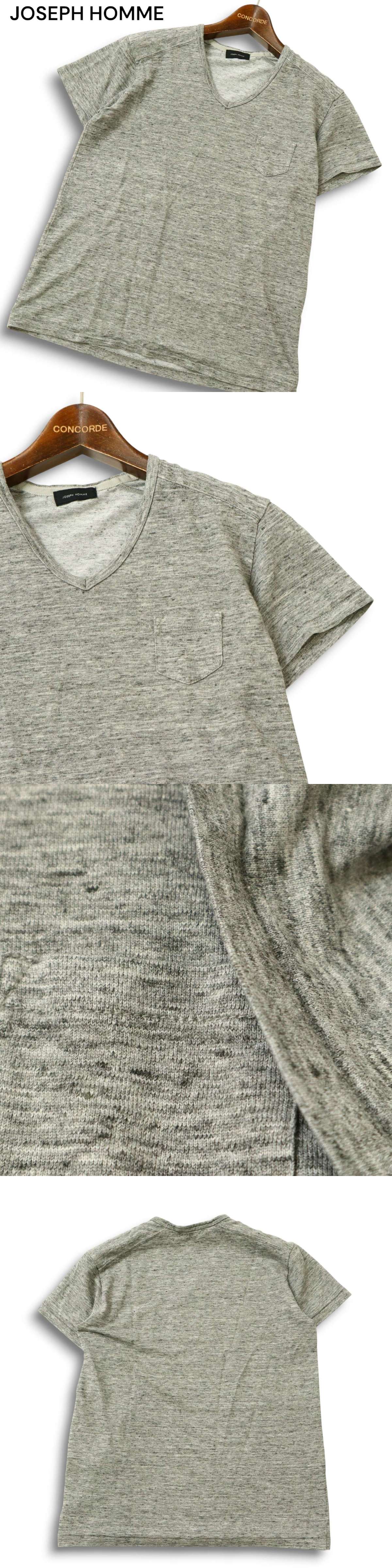 JOSEPH HOMME ジョセフ オム 麻 リネン★ ポケット ニット 半袖 Vネック カットソー Tシャツ Sz.46 メンズ グレー 日本製 收藏