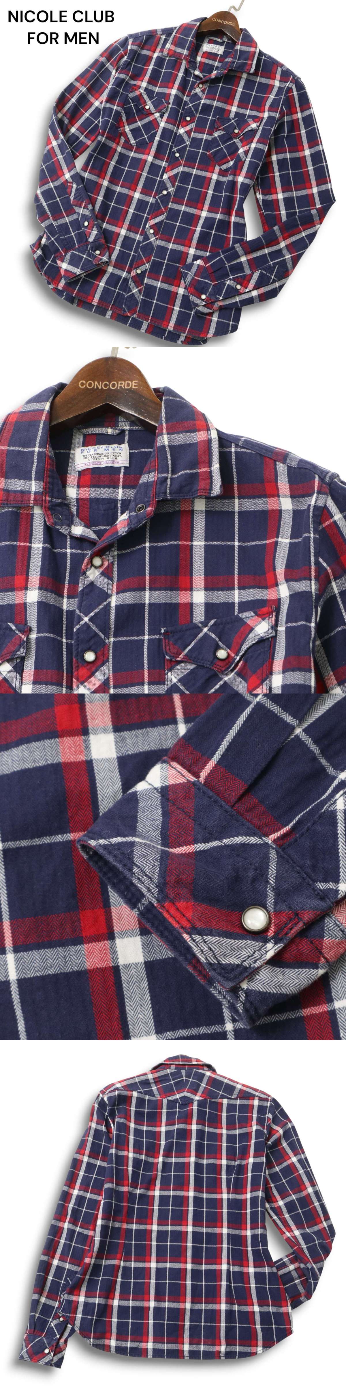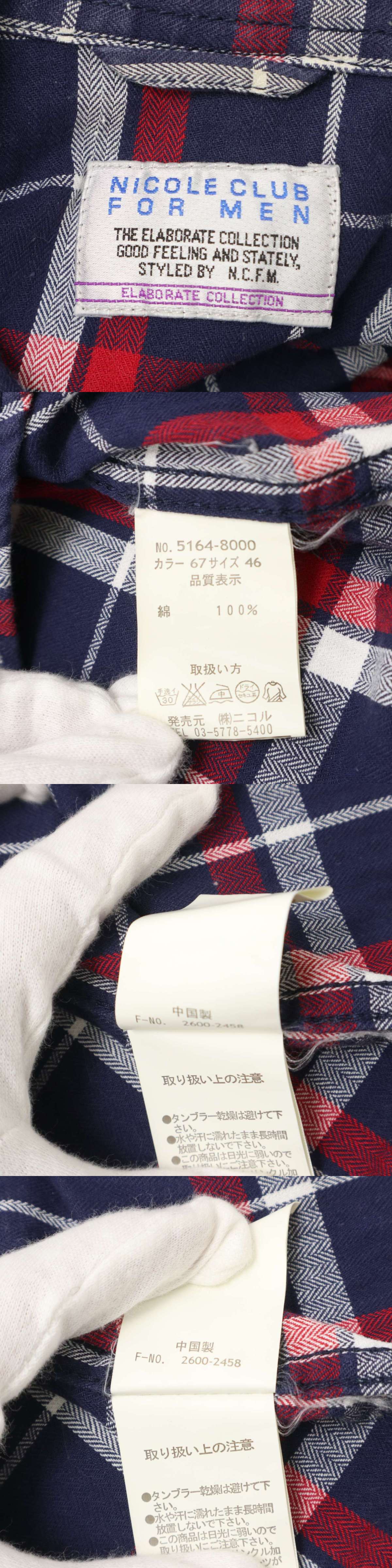 NICOLE CLUB FOR MEN ニコルクラブ フォーメン 通年 襟ワイヤー★ チェック 長袖 ワーク シャツ Sz.46 メンズ 收藏