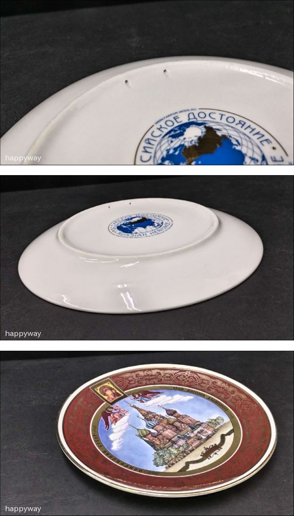 ロシア 記念プレート ロシアの壁シリーズ「ワシリイ大聖堂」磁器(ポーセリン)製 飾り皿 絵皿 金彩 陶磁器【保管品】60 收藏