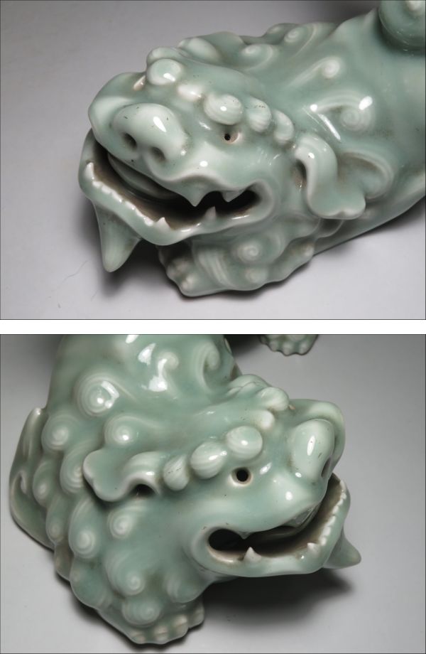| 「コレクター所蔵品」◆◆江戸期 鍋島焼 鍋島青磁 獅子 置物 古鍋島藩窯◆検:伊万里焼/有田焼/鍋島焼 | ||
