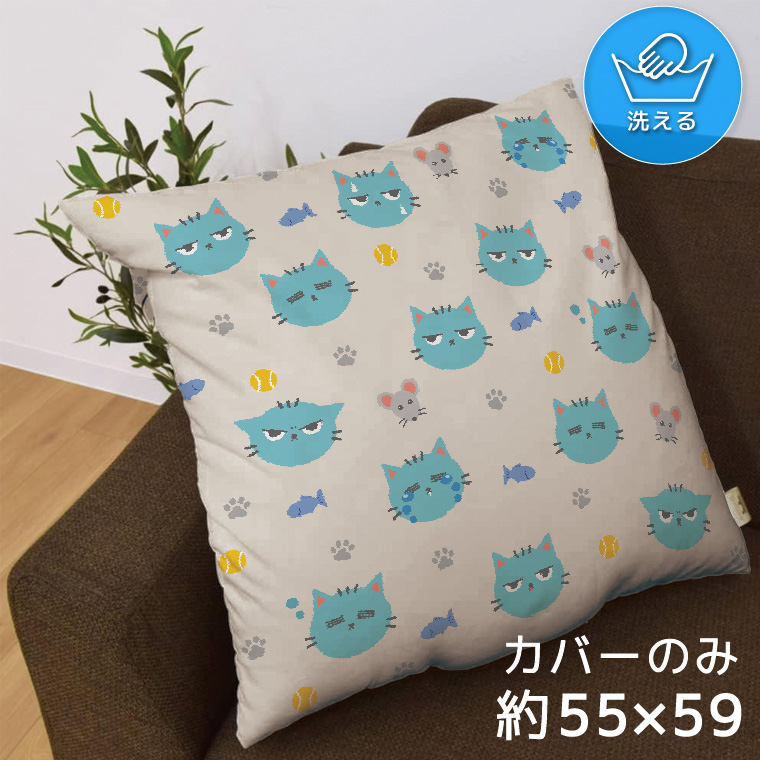座布団 カバー カバーのみ 約55×59cm 洗える ファスナー付 かわいい リビング 転写プリント イラスト CSC-B174 ねこ アニマル 收藏