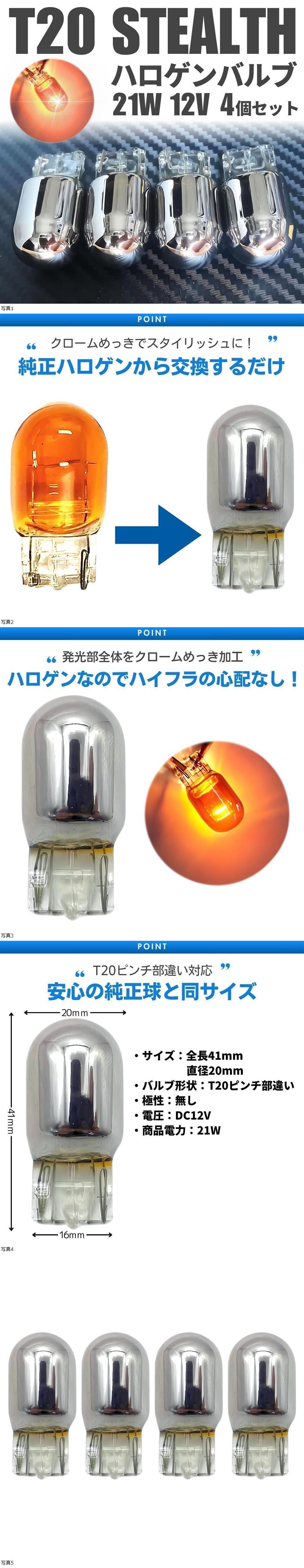 T20 ステルス ハロゲン ウィンカー アンバー ウェッジ球 クローム ピンチ部違い オレンジ 4個セット 12V 7440 シングル バルブ 黄色 收藏