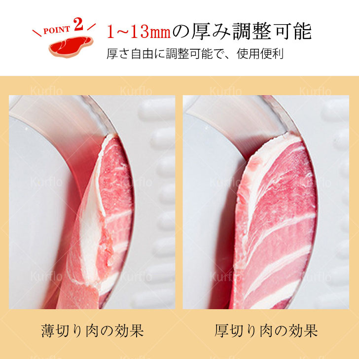 【新発売】Kurflo ミートスライサー 業務用 肉 スライサー 電動 250mm回転刃 高出力モーター 厚み調整0-10mm 電動 肉スライサー 收藏