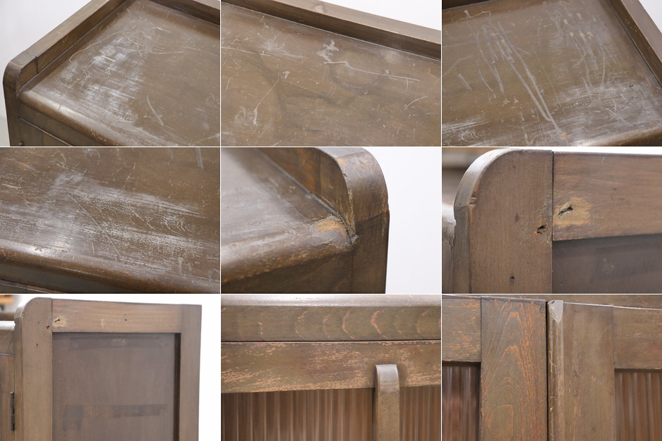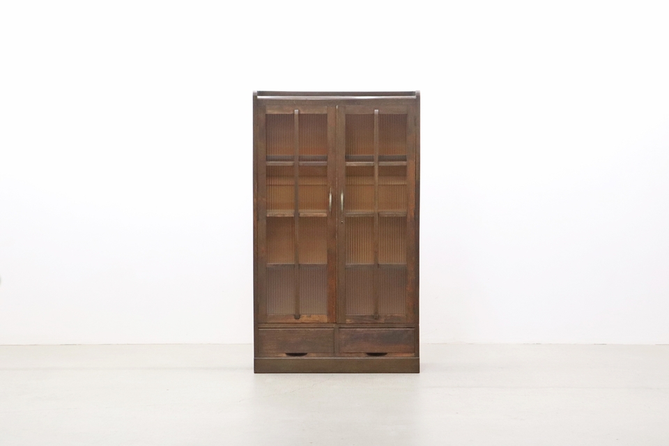 ◆レトロ 無垢材 本箱 食器棚 書庫 戸棚 収納 モールガラス キャビネット 水屋箪笥/ヴィンテージアンティーク昭和古民家/RAT20118◆ 收藏