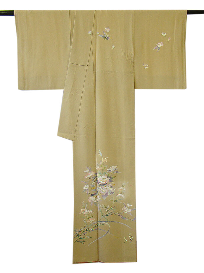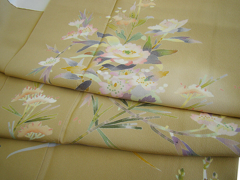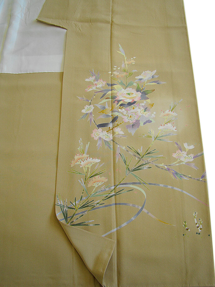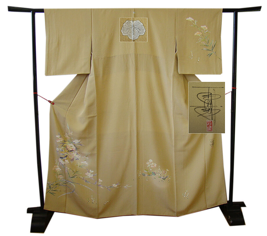 | 商品説明 | こちらのお品は「袷」でございますので、10月~5月までお召頂ければと思います。 一度は出逢い纏いたい京加賀友禅「百貫石峰」作の慶事の席にも映える高級訪問着です。 大変にしなやかで柔らかな手触りの重めの上質な極上ちりめん地の生地、 枯色地に白、藤、薄ピンク、国防、浅紫色等の花草柄の染柄、 気品に満ち溢れた彩りが正統派のお着物として一枚は欲しい秀逸品の素敵なお着物です。 八掛は共布に柄入り(正絹)、京加賀友禅「百貫石峰」作の落款入り、背に「蔦」の紋1ヶ、 幅広い年代の方にお召頂けます。 |