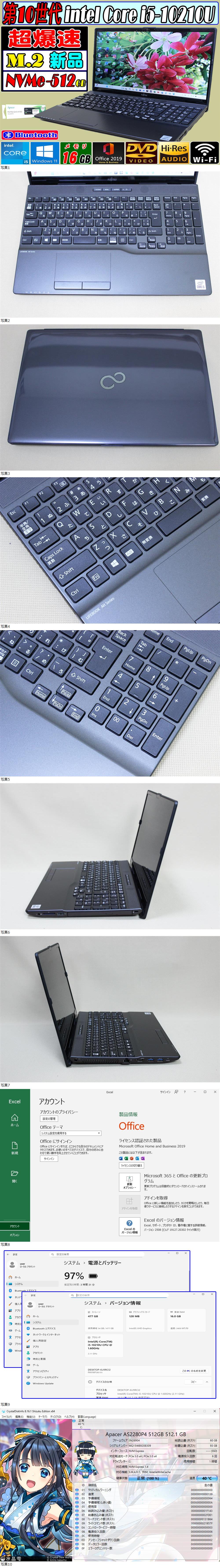 【第10世代のCPU】【intel i5-10210U】を搭載、そしてストレージには次世代(M.2)爆速SSDを採用した【ブライトブラック】の落ち着いたデザインでLIFBOOKシリーズの【上位機種】富士通ノートパソコンです。