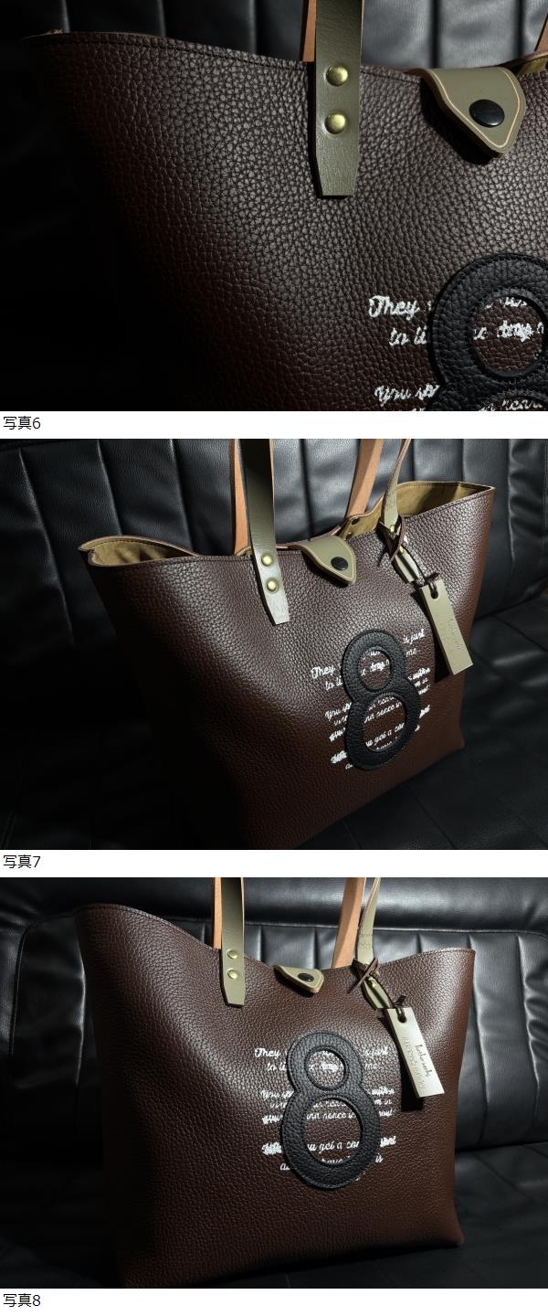 | ハンドメイド☆3☆両面仕上げ厚革シュリンクレザー☆ナンバリング8☆男女兼用☆持手:北米産ステア A4楽々サイズ☆裏地:岡山デニム | |
