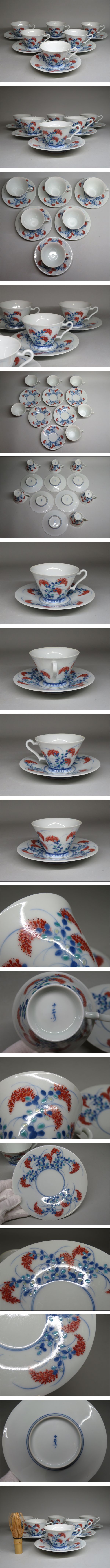 | 【十二代今泉今右衛門】 錦花模様 カップ&ソーサー 六客セット | ||