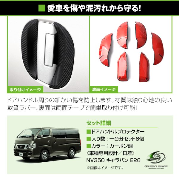 日産 NV350キャラバン E26 ドアハンドル ラバープロテクター カーボン 6Pセット ドアハンドルカバー ドアノブ アンダーカバー ガード 收藏
