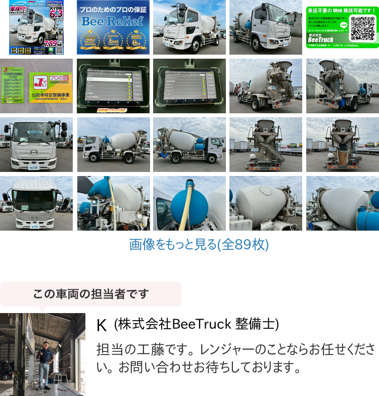 【諸費用コミ】:保証対象車両 車検付 令和8年9月迄 R2 日野 増トンレンジャー コンクリートミキサー車 KYB カヤバ 收藏