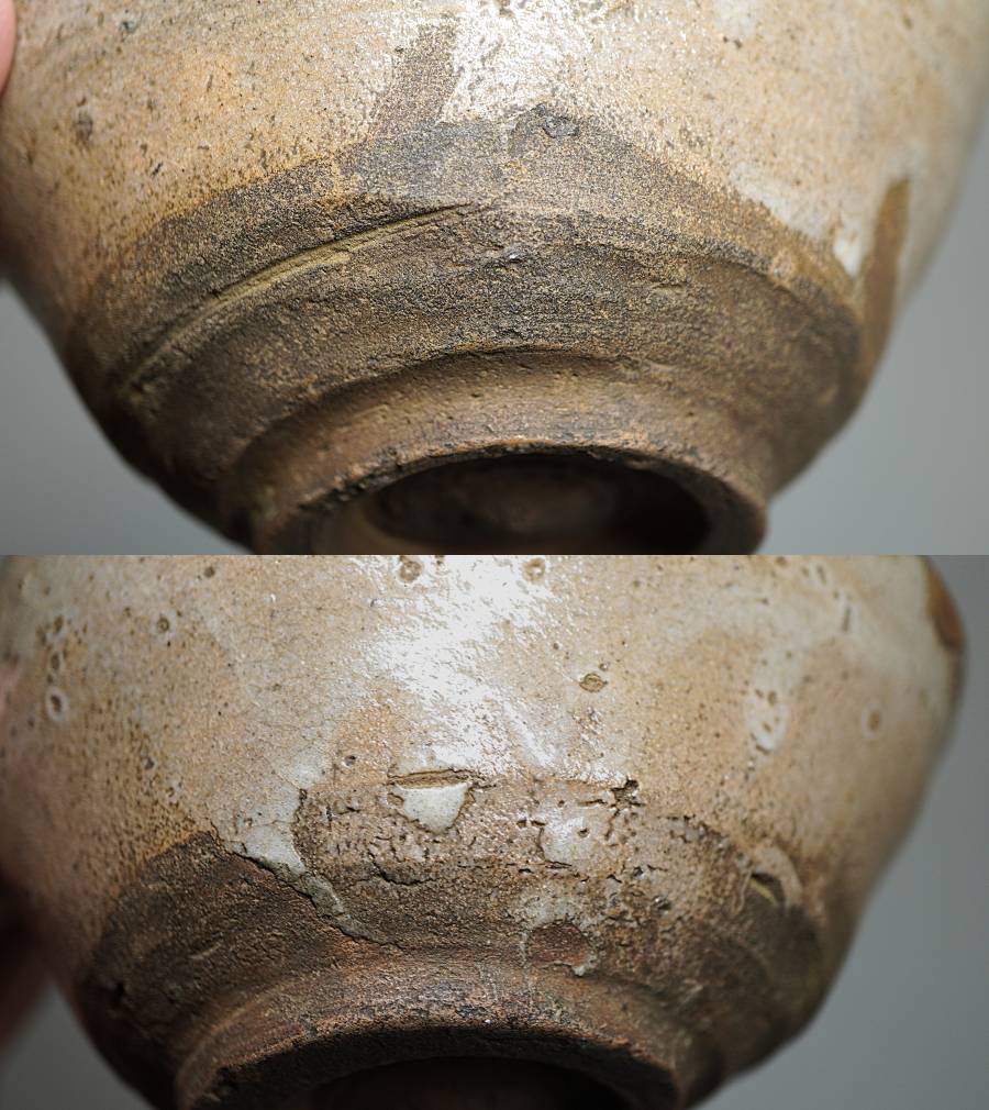 長石を含む灰釉がやや赤味を帯びた色合いに上がっており、鉄分を含む唐津特有の土はとろっとした心地よい土味を見せています。