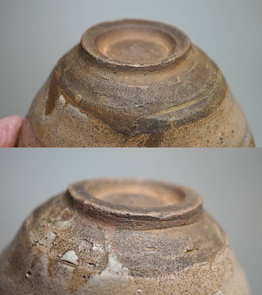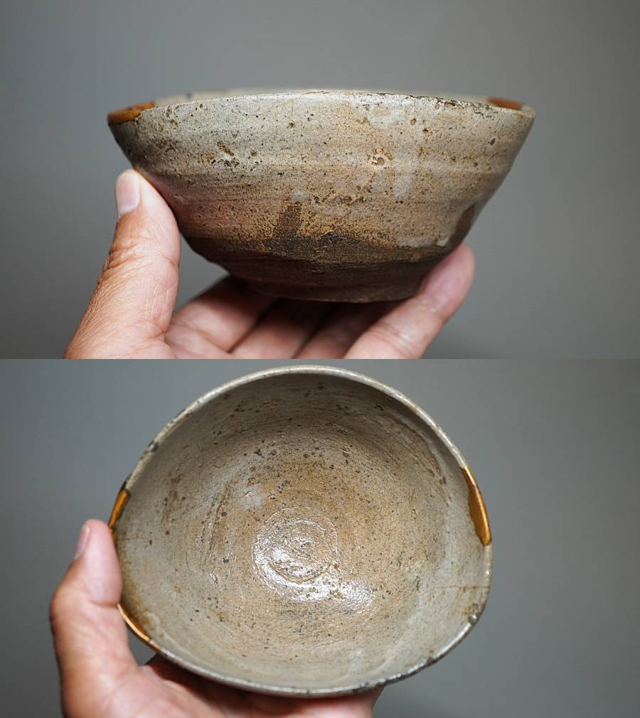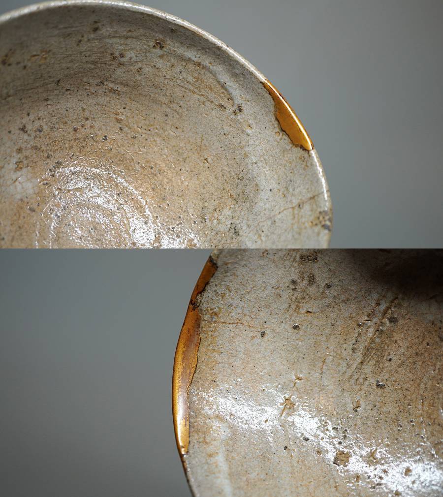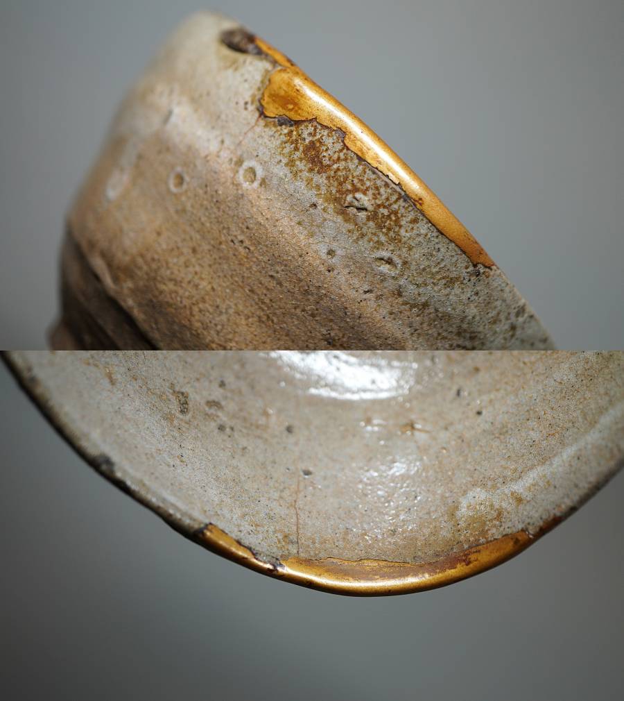 ご覧のように口縁に歪みや金直し、時代の薄いニュウはありますが、すべて馴染んでおりこの茶碗の魅力にもなっています。