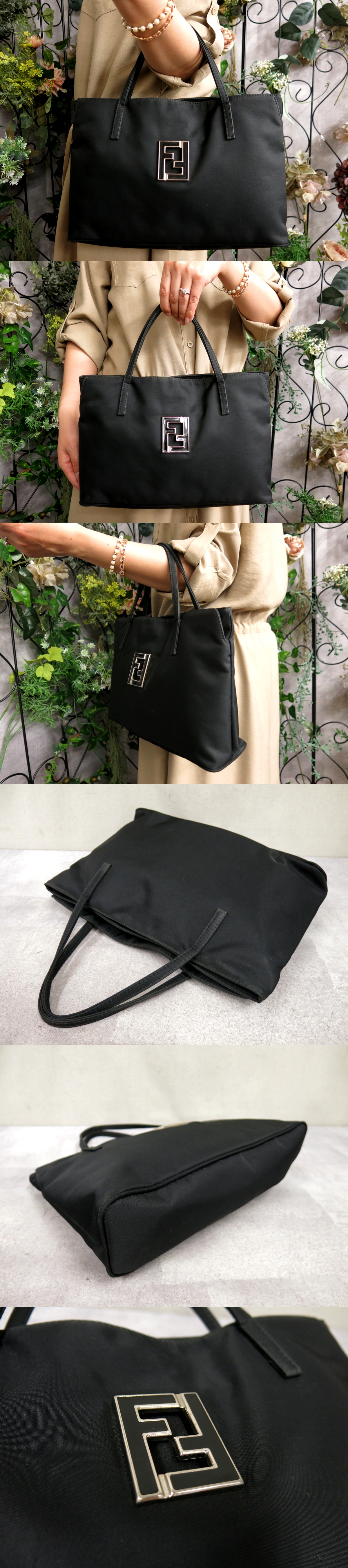 ●超美品●FENDI フェンディ●FF金具●ロゴ型抜き●ナイロン●ハンド トート バッグ●黒●シルバー金具●腕掛け●かばん●Js57024 收藏