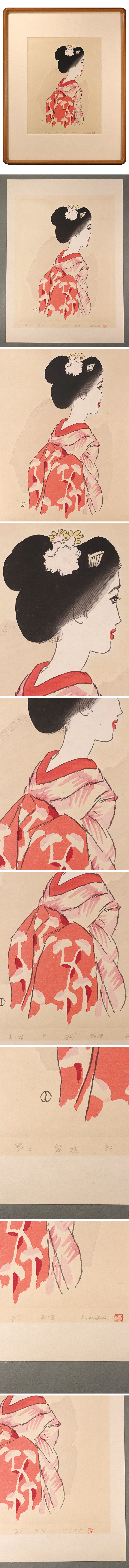 ∇花∇詩人画家【竹久夢二】作 1989年 名作木版美人画「舞妓」 限定300枚 彫摺:松永安生 岩野市兵衛の越前生漉き和紙 額装品