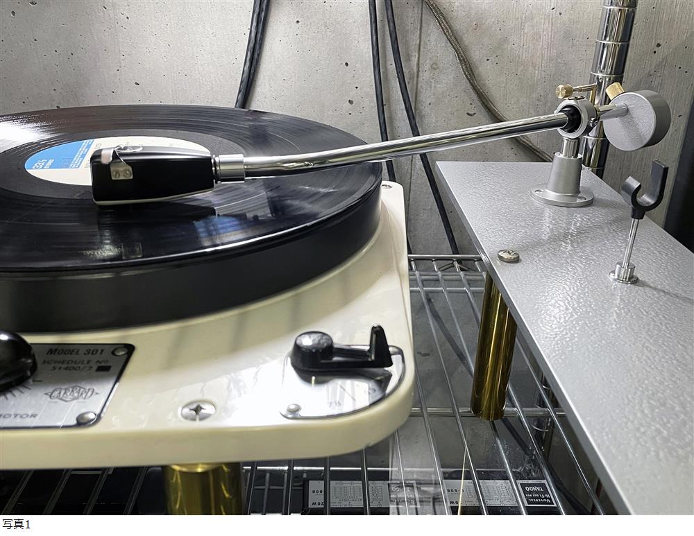 ●業務用ロングトーンアーム:DENON DA-302をダイナミックバランス方式に改造したものです。●全体的に小傷も少なくたいへん綺麗です。●針圧の印加にスプリングを使用したOrtofonやFR、IKEDA等のダイナミックバランス型トーンアームと原理と効果は同じものです。●ダイナミックバランス方式は反りの大きなレコード盤の追従性能が向上し、情報量や解像度、弾力性、低域の力強さ等で勝り、歪みの減少にも寄与します。●針圧調整には針圧計が必要となりますが軽針圧から重針圧まで精密な調整が可能で最大針圧は約5gです。●スプリングが引っ張られていない状態でバランスウェイトを移動して0バランス調整を行い、つまみの回転で針圧調整を行います。●ヘッドシェルとカートリッジの合計重量の適応範囲は8g~35gとたいへん広範囲です。●ダイナミックバランス装置と砲金製バランスウェイト(シルバーグレーのハンマートーン塗装)は出品のために製作した未使用新品です。●オリジナルのアームレストが付属します。●取り付けネジはステンレス製ボルト・ナットとワッシャー3組とステンレス製タッピングネジ3個も付属します。●バランスウェイトの取り付けの傾き具合でラテラルバランスの調整が可能です(トーンアームの構造上必ずしもラテラルバランスを取る必要はありません)。●DA-303のカタログでは実効長(アームの回転軸から針先までの距離):282mm、オーバーハング:12.5mmとなっていますがこれは一般のものより短めの専用ヘッドシェルを用いた時の値です。一般のヘッドシェルはこれより16mmほど長いので実効長は約298mmにもなります。オーバーハングは12mmで良いでしょう。●DA-302およびDA-303は元々RCA端子付きのフォノケーブルは付属しない製品でした。●このトーンアームは導線の色がL,R 、ホット,アースの双方とも通常とは逆相となっており緑がLのホットで赤がアース、青がRのホットで白がアースです。●5本の導線の先端はハンダ処理をしてあります。●全てのベアリング等の動作は良好で導通も問題ありません。| 出价者 | 信用 | 价格 | 时间 |