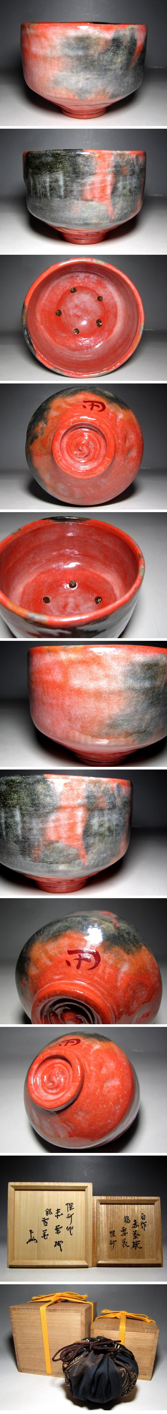 表千家十二代 惺斎 自作赤茶碗 「雪花」 即中斎追書 二重箱 m160 收藏