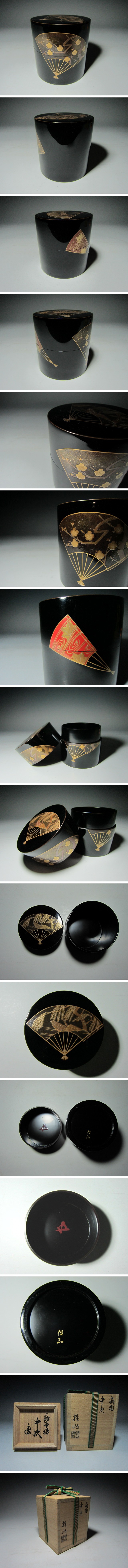 平野五郎(桂山作)扇面蒔絵中次 棗 鵬雲斎花押の名品!7225 收藏