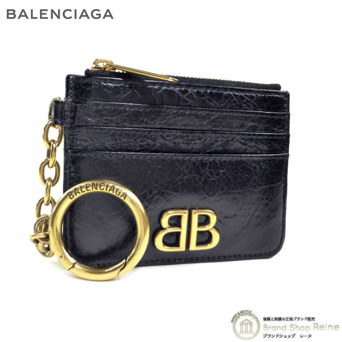 バレンシアガ (BALENCIAGA) モナコ BB コインケース カードケース キーチェーン付き 小銭入れ 793832 ブラック×GO金具(中古) 收藏