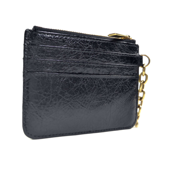 ベルトループに付けたり、バッグのアクセントとしても使えるキーチェーン付きで、カードケースやミニ財布として活用できるラグジュアリーなコイン&カードホルダーです。