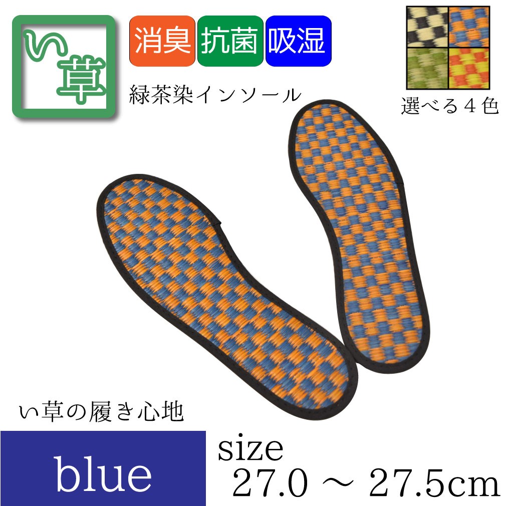 い草インソール メール便 送料無料 中敷き サイズ約27~27.5cm ブルー 青 靴中敷き 中敷 いぐさ 国産 靴敷き 和風 夏 消臭 脱臭 おしゃれ 收藏