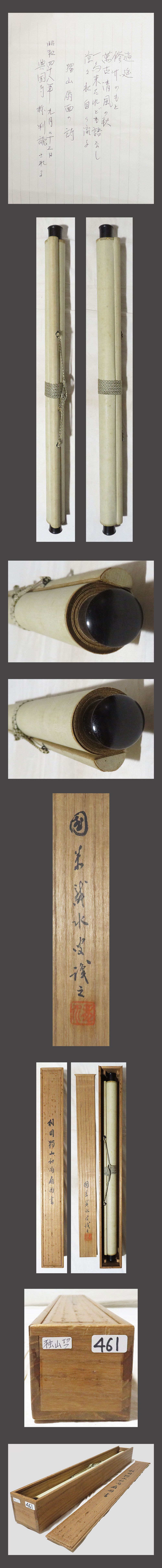 ・掛軸の軸先ですが、細心の注意を払って梱包しておりますが、 配送中の振動・気温・経年劣化等で外れてしまうことがあります。 軸先の外れは、破損ではございませんので、返品の対象にはなりません。 大変お手数ですが、お客様ご自身での修復をお願い致します。 ・添付写真の画像と説明文でご理解頂ける方、ご入札を宜しくお願い致します。 ・添付写真の画像は撮影の光度により、現物と若干の色合いの相違が生じる事があります。 ・添付写真の画像は受取完了のご連絡を頂いた後に速やかに消去しますのでご了承下さい。 ・土・日・祝日はお休みさせて頂きますので、商品発送は、月曜日以降になります。 ・祝日の場合は、翌日の平日以降の発送になります。 ・土・日・祝日は、メールの返信が若干遅れる事がございます。どうか、ご了承下さい。 ・時間的に余裕がない場合などでお答えが出来ない事も多々有ります。 ご不明な点は落札日前日までに早めにご質問下さい。 ・商品トラブルがあった場合は、直ちにご連絡下さい。 お取引に付きましては迅速・丁寧に対応させて頂きます。 ・落札後、できるだけ2日以内に連絡(返信)を頂ける方、 5日以内にご入金できる方の御入札を御願い致します。 ・新規の方や評価の総評が悪い方は当方の判断にて、入札取り消しを行う場合がございます。 ・お取引に付きましては、迅速、丁寧に対応致しますのでどうぞ、宜しくお願い致します。 ・古美術品や古物や古書画の出品が多いため、神経質な方がご入札される場合は、 ご自身が納得の行く価格でご入札ください。 ・万一、ヤフーのシステム障害により、公正なオークションができなかったまま終了し、 落札者様にご落札された場合は、当方より取引ナビで取引中止のご連絡を致します。 その時は、どうか、ご了承をお願い致します。 ・終了当日・直前の入札の取り消しは、 トラブルの原因となりますのでご遠慮お願い致します。 ・入札後の取り消し(キャンセル)は行っておりません。 ・落札後のキャンセル・返品はお断りしてます。 入札前によくご確認頂き、間違いのないようにご注意下さい。 |