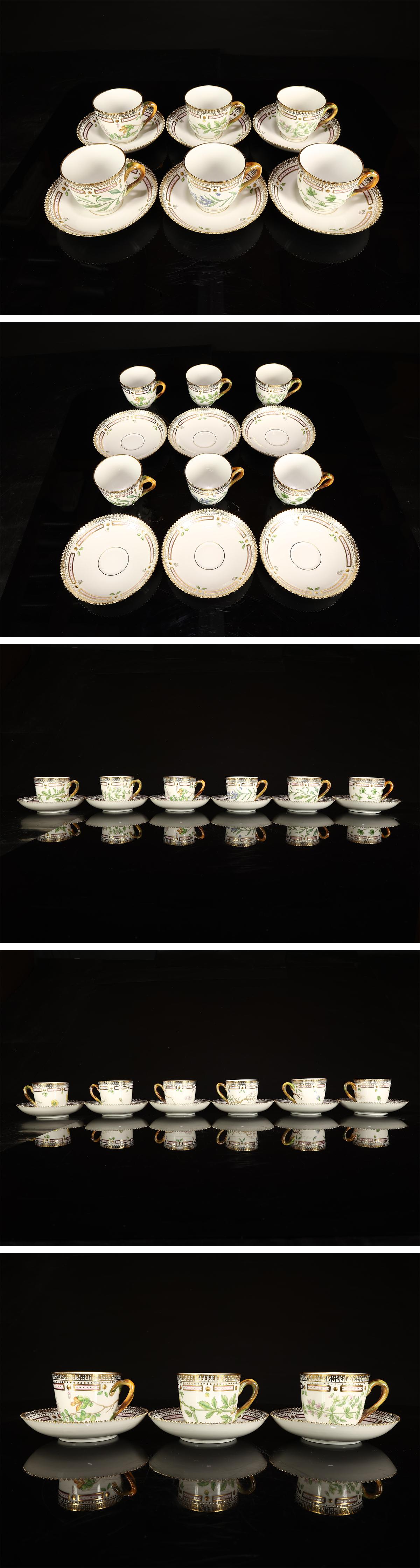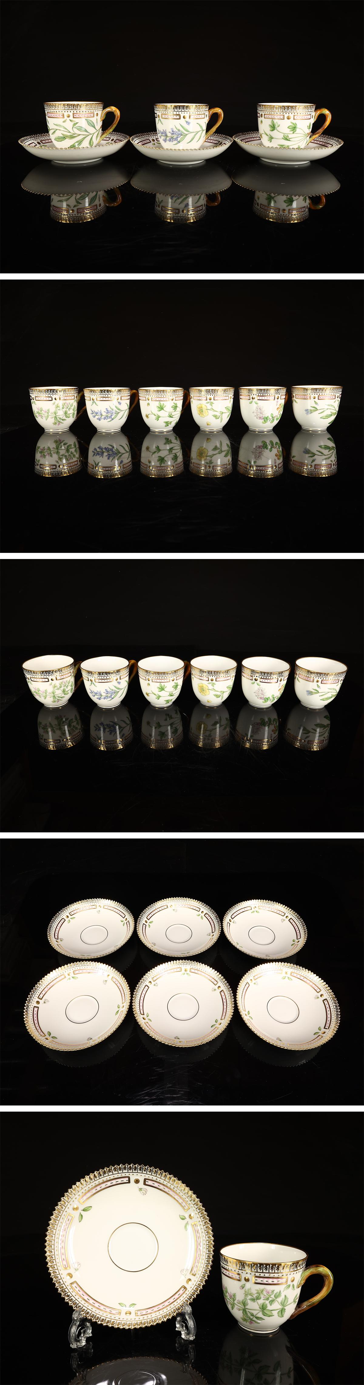 【吉】CL491 ROYAL COPENHARGEN ロイヤルコペンハーゲン 最高級シリーズ フローラダニカ カップ&ソーサー 6組 12点セット/共箱付 未使用 收藏