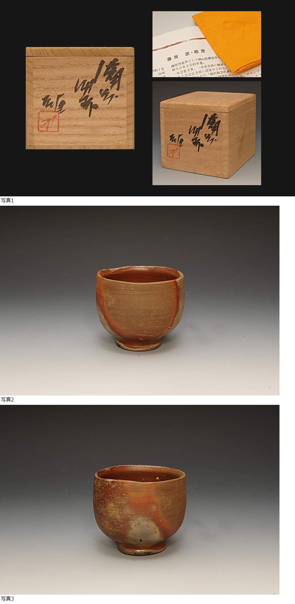星庵厳選名品企画 人間国宝 藤原雄 備前窯変酒盃 共箱 酒器