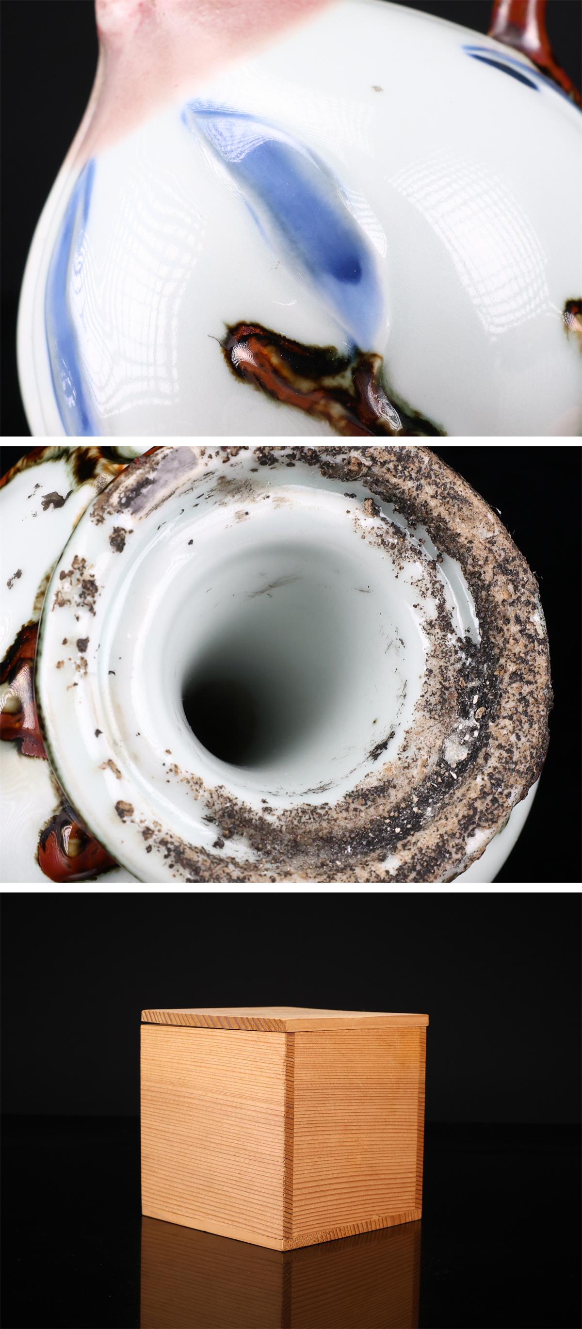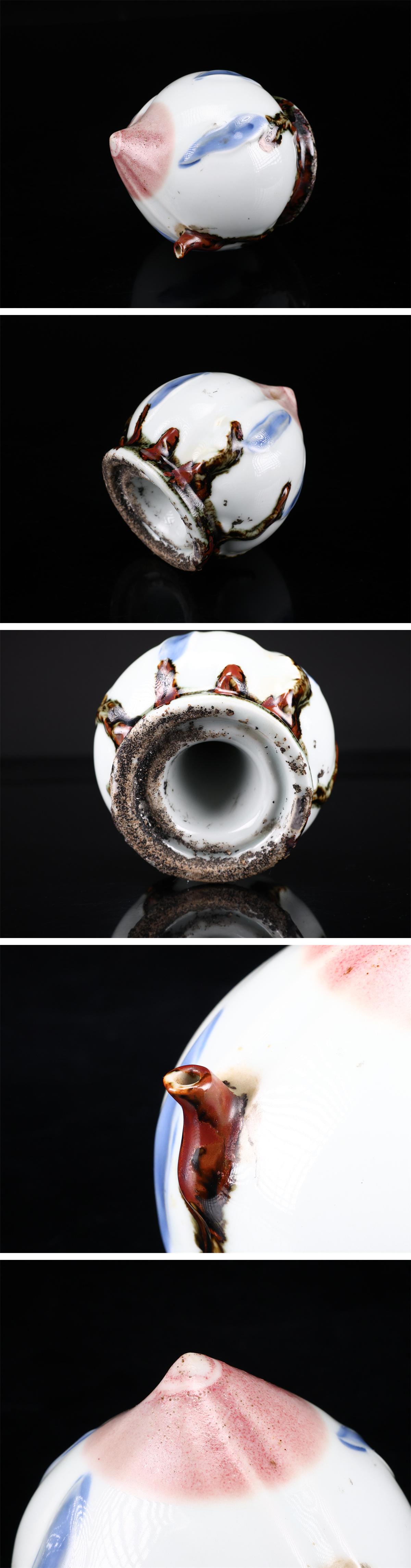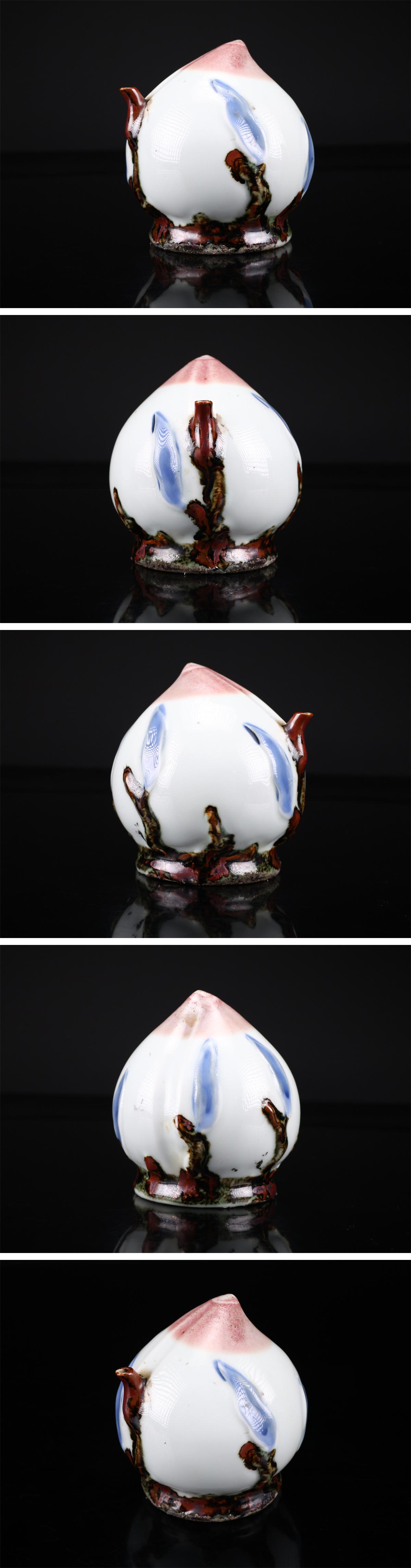 【吉】CP894 【李朝時代】 鉄絵染付釉里紅 桃 水滴 高10.5㎝ 径9㎝/箱付 美品! 收藏