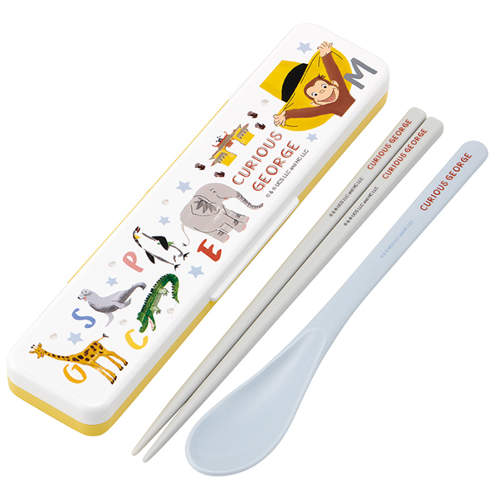 ☆ おさるのジョージZOO ☆ キャラクター 抗菌コンビセット Skater スケーター キャラクター お箸 スプーン 箸ケース セット カトラリー 收藏